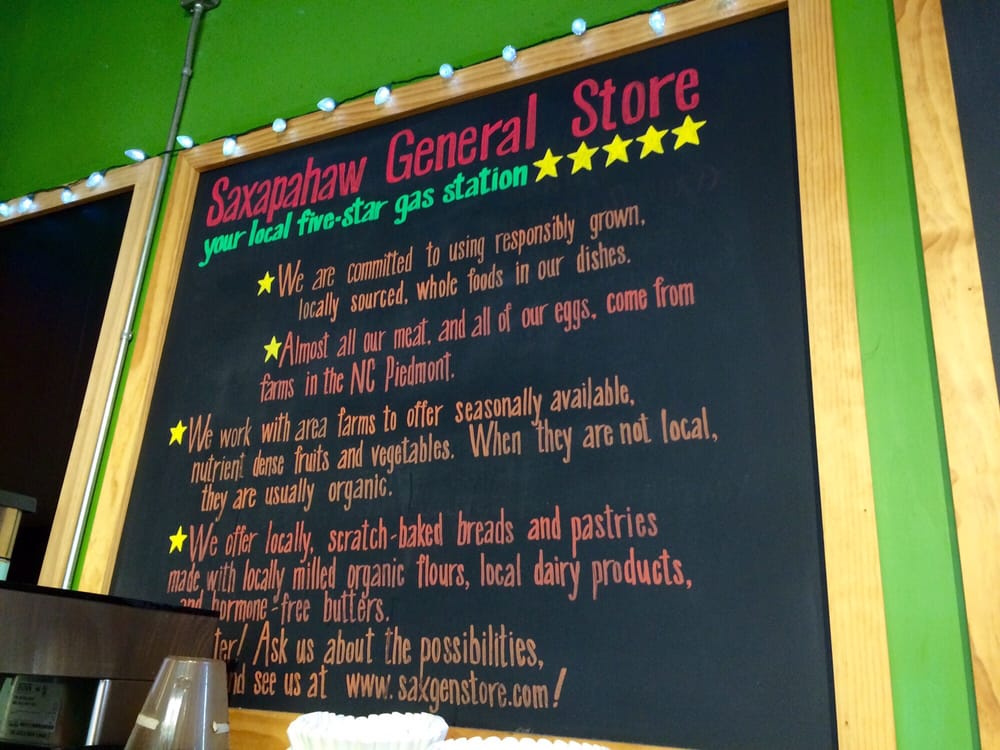 Located in Saxapahaw, NC, Saxapahaw General Store offers American cuisine with a focus on breakfast and brunch. This quaint eatery provides a variety of amenities such as delivery, takeout, outdoor seating, and catering services. With a diverse menu that includes both traditional comfort food and upscale options like duck dishes, this spot caters to all tastes. Customers rave about the generous portions and flavorful dishes, such as the biscuit and sausage gravy or the Chorizo Biscuits and Gravy. The cozy atmosphere, friendly service, and unique offerings like duck fat fries make this a must-visit destination. Additionally, the on-site general store offers a selection of local goods and vintage sodas, adding to the charm of the experience. Whether you're a local or just passing through, Saxapahaw General Store promises a memorable dining experience.